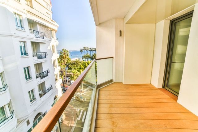 Cannes Croisette. Perfect location, right in front of Palais des Festival, with sea view, in one of the most fashionable apartment buildings in Cannes, and the most recently constructed (2015). Everything is top quality both regarding the building, with security, concierge, elevators (even for the cars to the garage) and inside the flat itself.